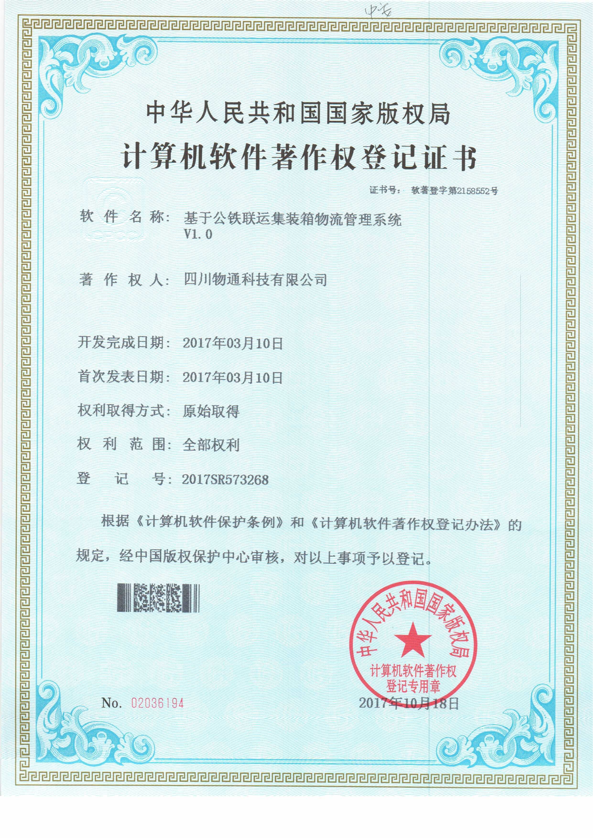 四川物通科技集團有限公司取得兩項計算機軟件著作權(quán)證書